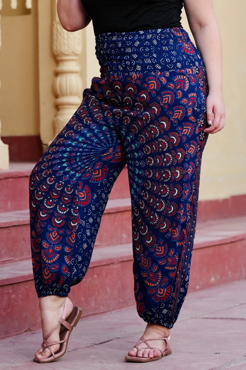 SARJANA Women's Rayon Mandala Printed Harem Trousers with Pockets - FREE SIZE