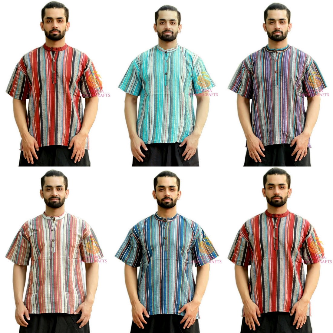 SARJANA Heren 100% katoen gestreept casual shirt korte Kurta Indiase losse pasvorm etnische Kurta