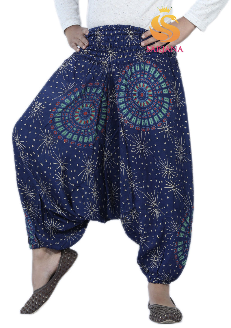 These Harem Pants made from 100% Rayon Fabric with Wide Elastic Fitted Waistband. These Pants has Elastic fitted ankles also.